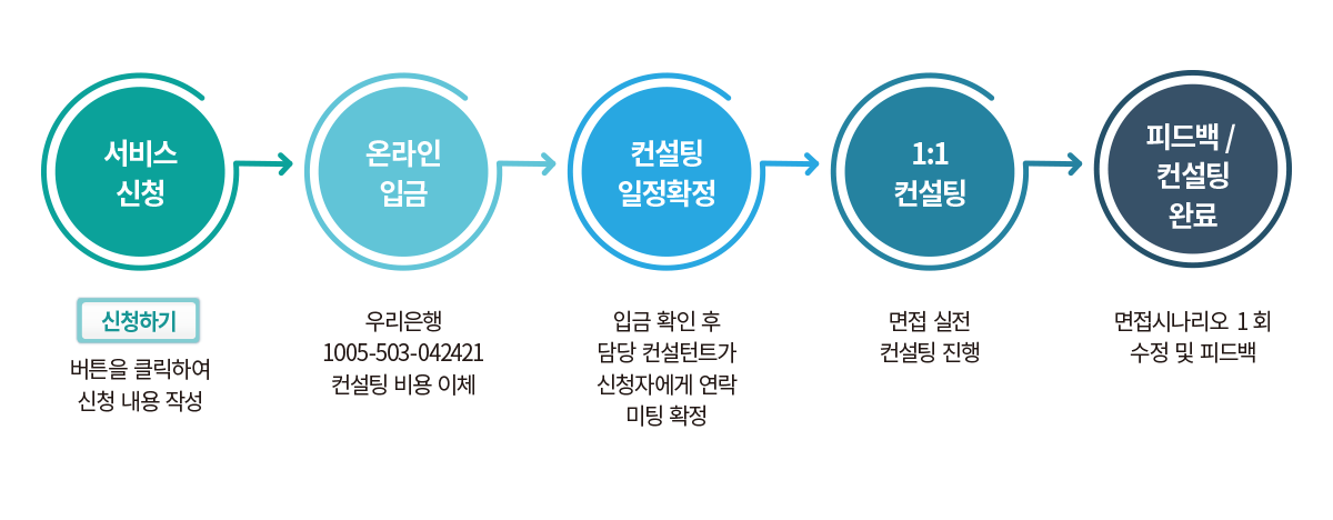 | 7 | 수정 및 피드백 | 컨설팅 완료 후 작성된 면접 시나리오에 대해 온라인으로 1 회 수정 또는 첨삭지도 |